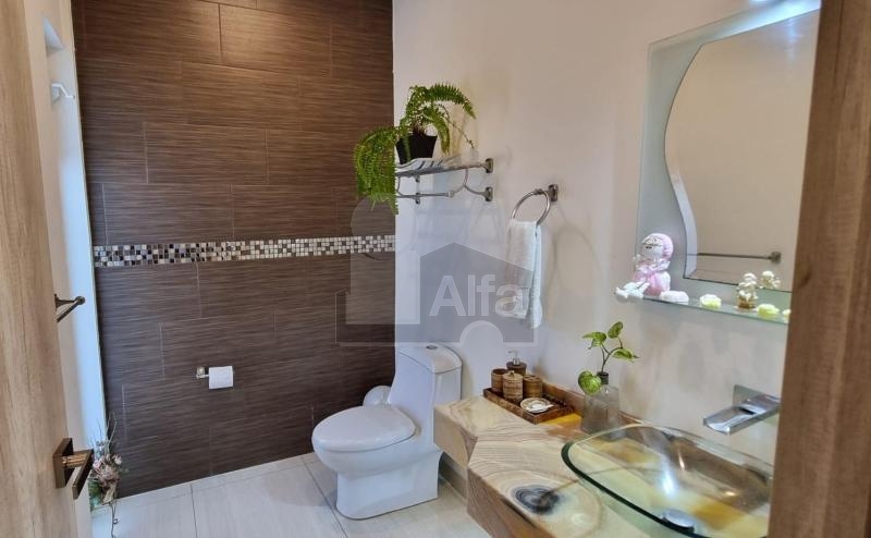 En planta alta encontrarás 3 recámaras: la principal con baño completo y vestidor, además de tina de hidromasaje; dos recámaras secundarias con clóset y baño compartido, además de área de TV y vertedero.